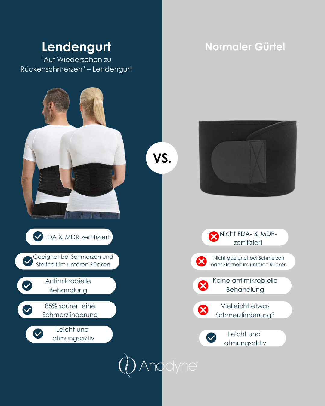Anodyne® ist ein europäischer Hersteller und Wiederverkäufer von Kleidung zur Haltungskorrektur mit der Technologie des amerikanischen Unternehmens Alignmed Inc. - dem weltweit führenden Entwickler von Haltungskleidung. Die FDA-Registrierung von Alignmed können Sie hier einsehen.